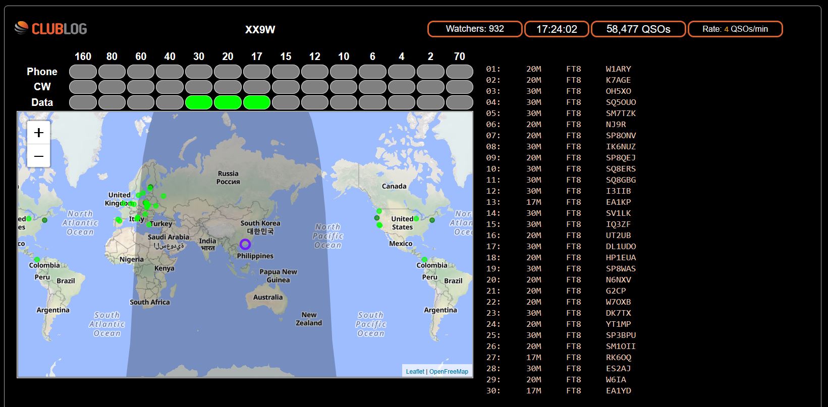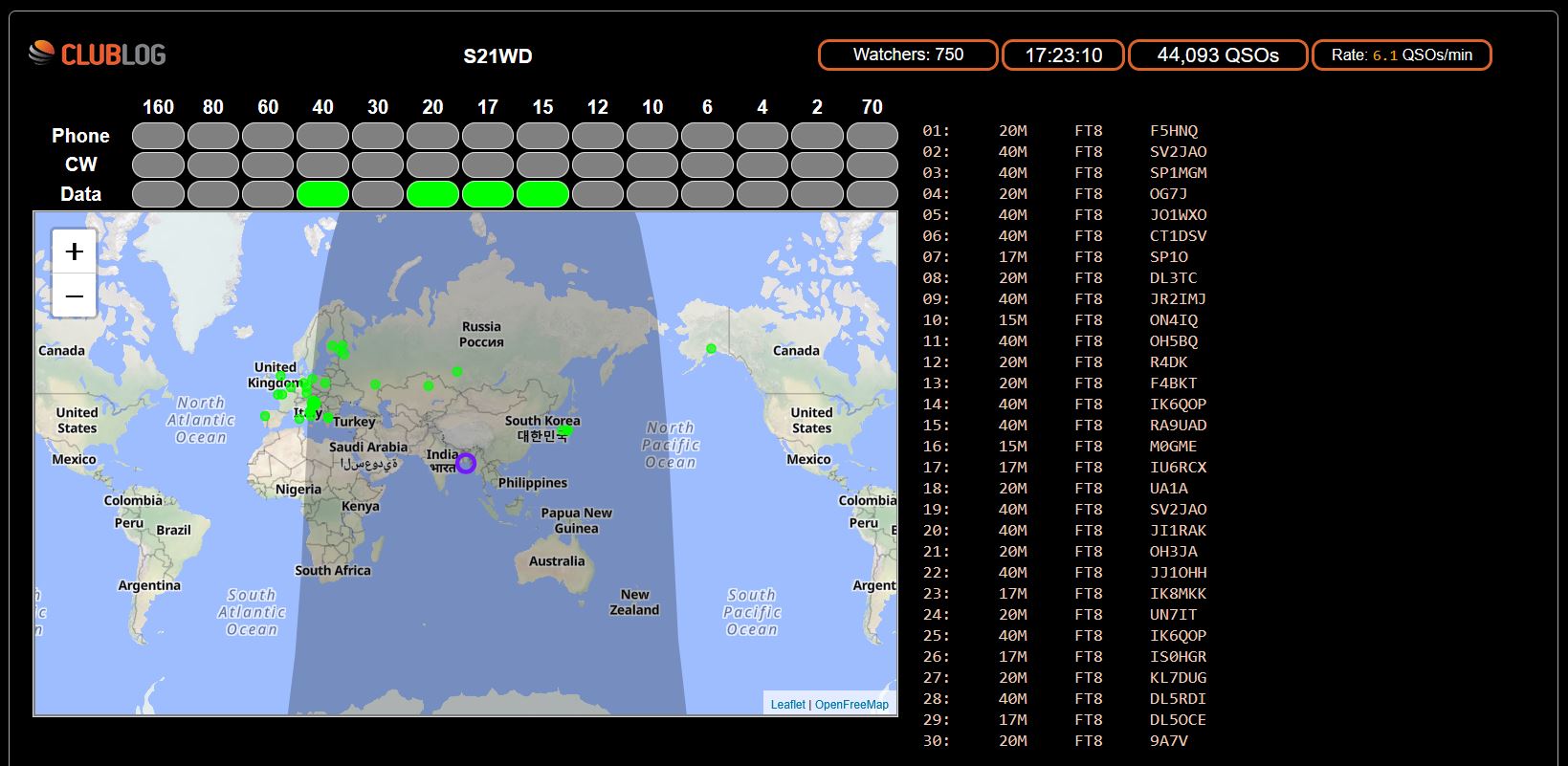 Here’s a couple snapshots of the Livestreams from my hunt for XX9W and S21WD a few minutes ago: